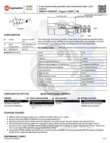 مشخصات تکنیکی شیر کارتریج sun hydraulic مدل DBAH ACN