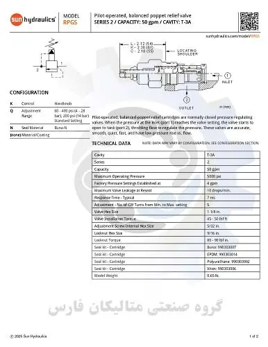 مشخصات تکنیکی شیر کارتریج sun hydraulic مدل RPGS-KQN