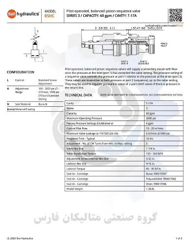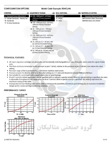 مشخصات تکنیکی شیر کارتریج sun hydraulic مدل RSHC LAN