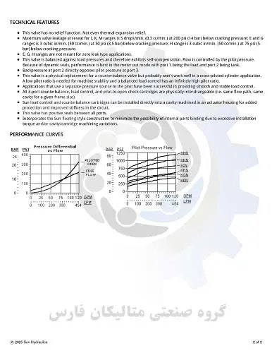 مشخصات تکنیکی شیر کارتریج sun hydraulic مدل MBIM XIN
