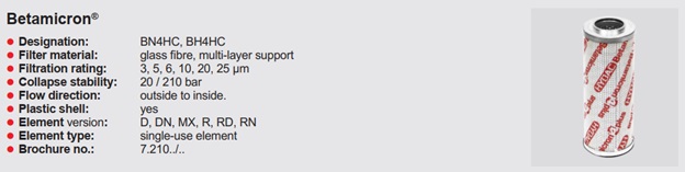 | Filter material, element | BH/HC=Betamicron high pressure |