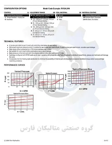 مشخصات تکنیکی شیر کارتریج sun hydraulic مدل RVGA LWN