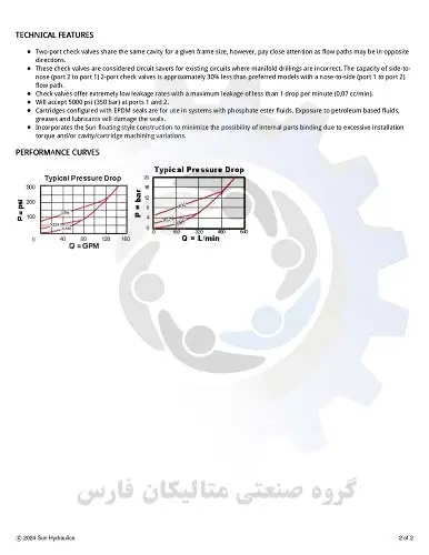 مشخصات تکنیکی شیر کارتریج sun hydraulic مدل CXID XCN