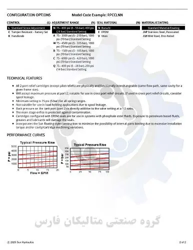 مشخصات تکنیکی شیر کارتریج sun hydraulic مدل RPCC LNN