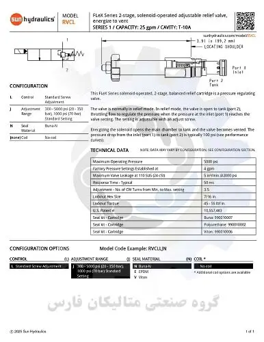 مشخصات تکنیکی شیر کارتریج sun hydraulic مدل RVCL LJN