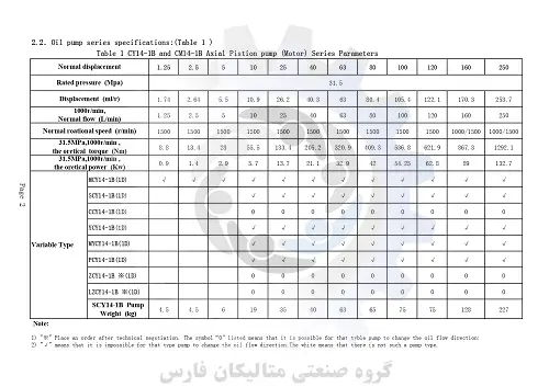ویژگیهای عملکردی و فنی پمپ پیستونی محوری سری CY14-1B مدل MCY14-1B