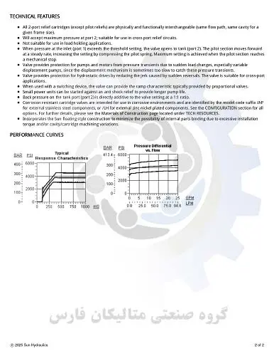 مشخصات تکنیکی شیر کارتریج sun hydraulic مدل rpet lwn